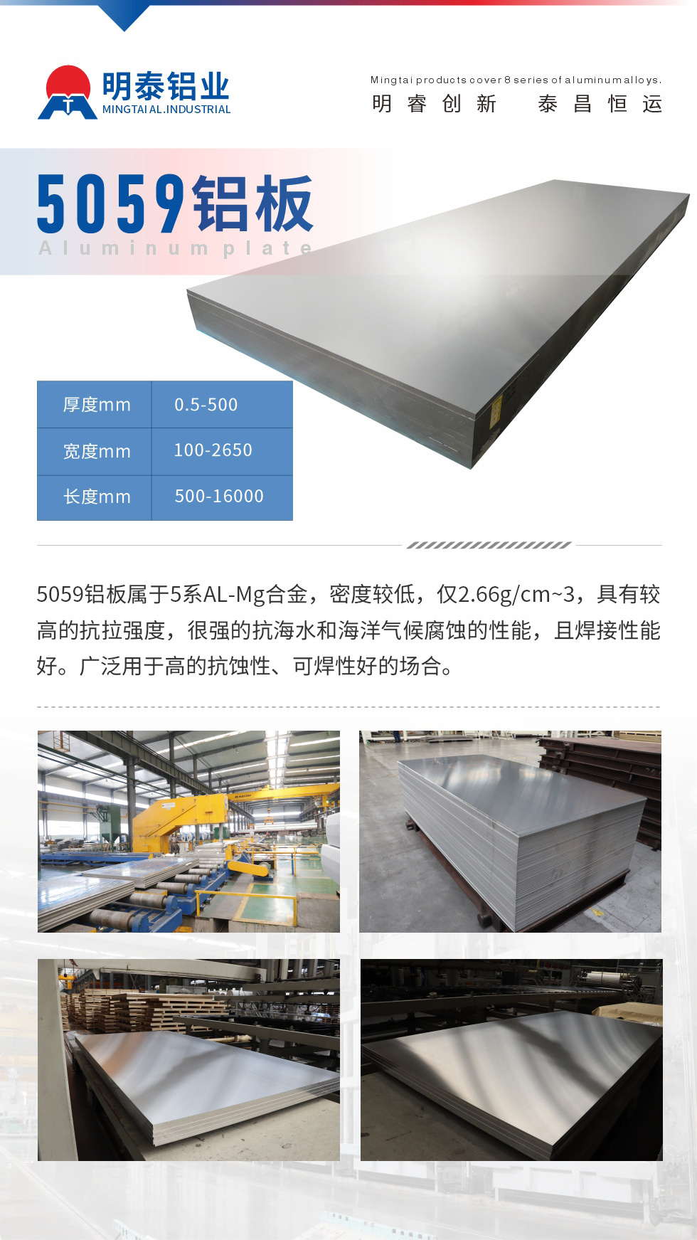 明泰鋁業(yè)大型5059鋁板生產(chǎn)廠家,上市公司,是一家集設(shè)計(jì)、研發(fā)、生產(chǎn)、銷售于一體,生產(chǎn)產(chǎn)品廠家直銷模式,減少中間商流程,5059鋁板價(jià)格更加實(shí)惠。咨詢177-3712-6910